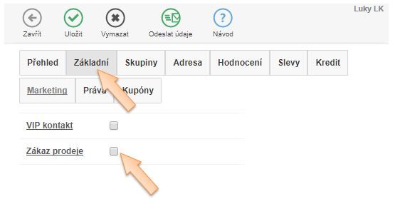 - Tip: Příznak Zákaz prodeje je možné nastavit na daném kontaktu v záložce Základní.