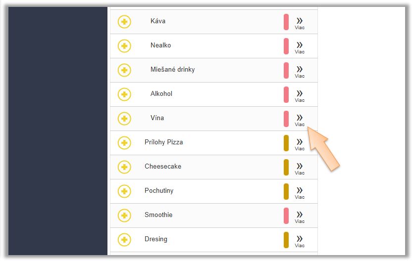 Radenie položiek sa nastavuje v rámci jednotlivých kategórií, kde je možné definovať, ako sa budú položky po rozkliknutí kategórie zobrazovať.