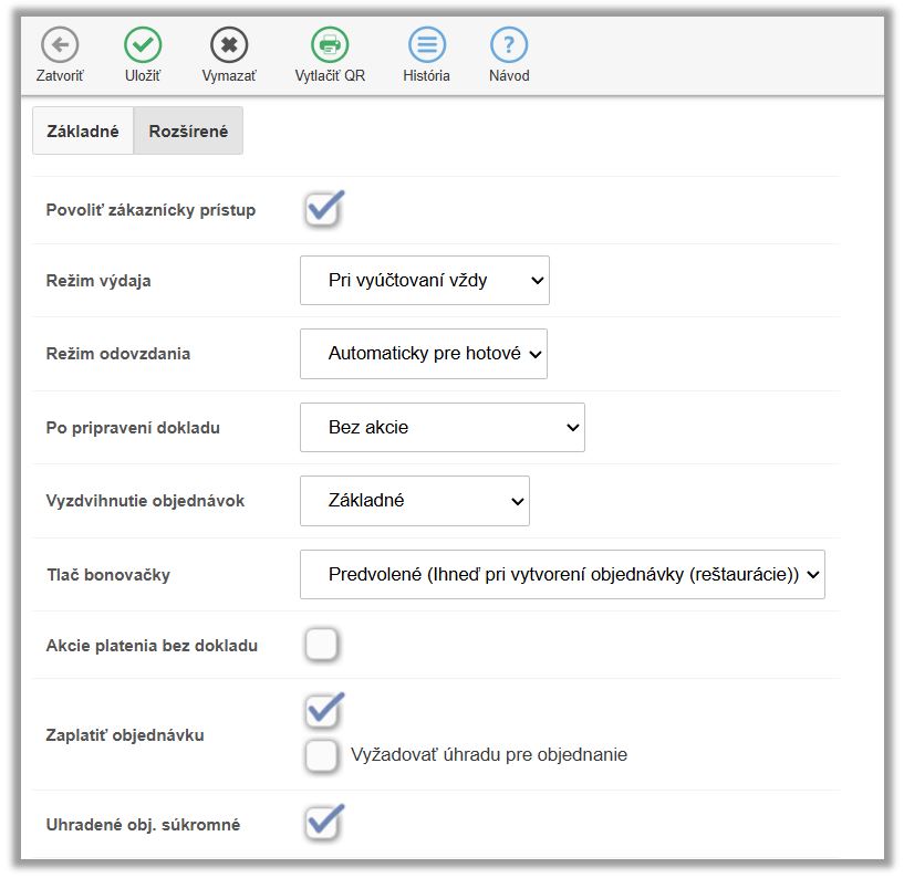 Vytváranie a nastavenie stolov, tlač QR kódov