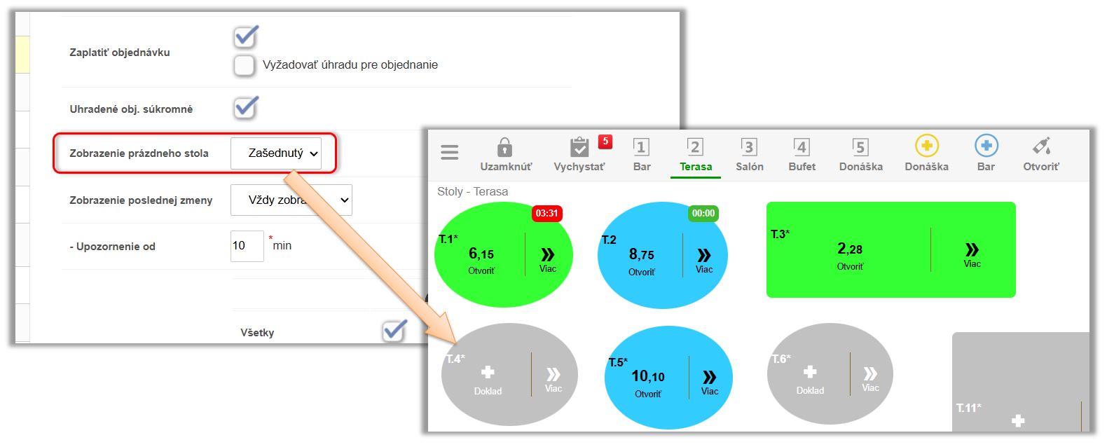 • V poli Farba, je možné nadefinovať farbu daného stola ktorá sa bude zobrazovať pri predaji.