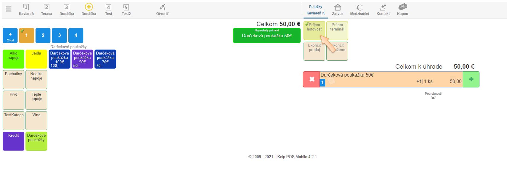 - Ukončite doklad kliknutím na požadované platidlo.