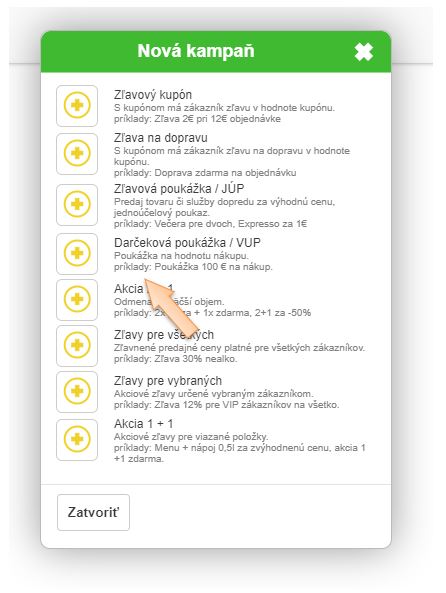 Vytvorenie kampane Darčeková poukážka / VUP