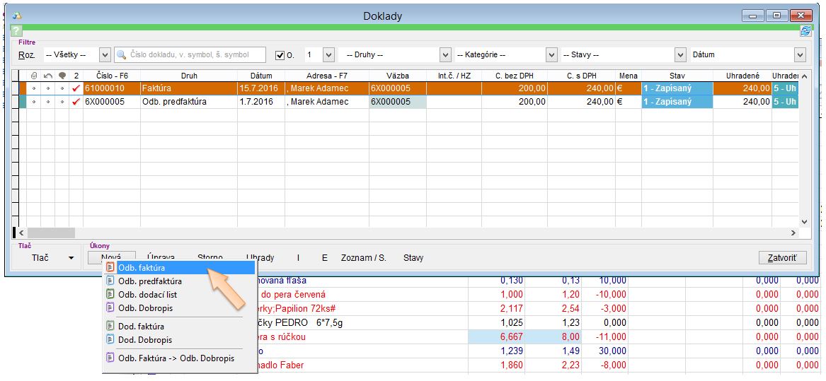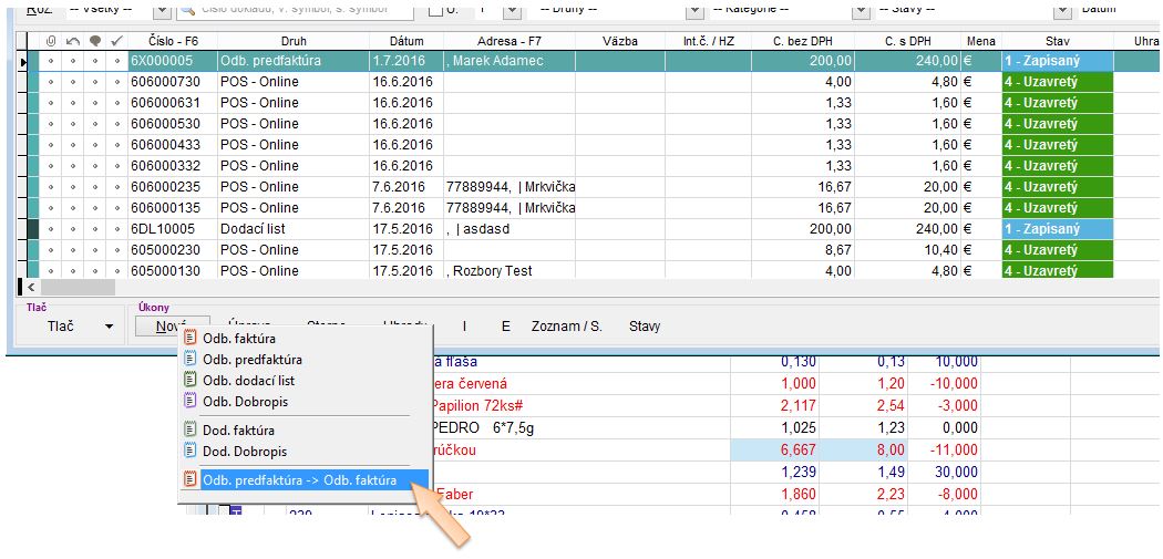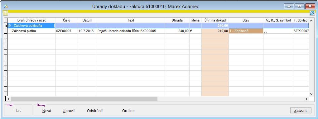 2. Vystavenie vyúčtovacej faktúry k prijatej zálohe