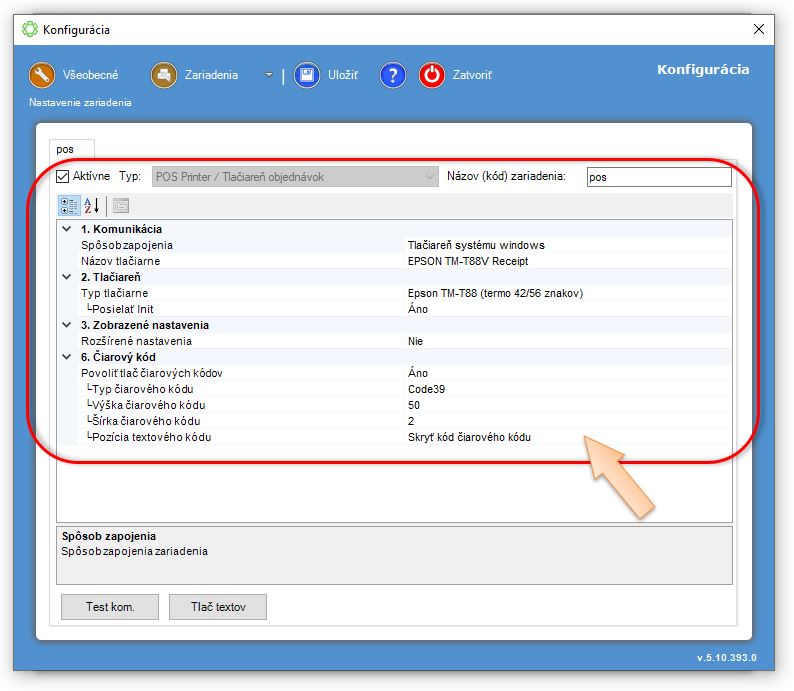 - Typ nastavte na POS Printer / Tlačiareň objednávok.