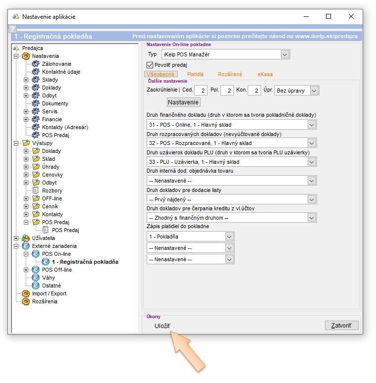 - Deaktivujte výstup Účtenka, fiskálny doklad.