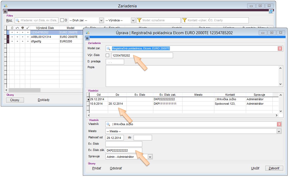 Záznam, kto je vlastníkom a na akej prevádzke bolo zariadenie sa berie z dátumu výdaja plomby a príslušného záznamu Od, Do vlastníkov, nakoľko sa počas roka mohlo lepiť viac plomb na dané zariadenie a pripadne mohli byť aj rôzni vlastníci.